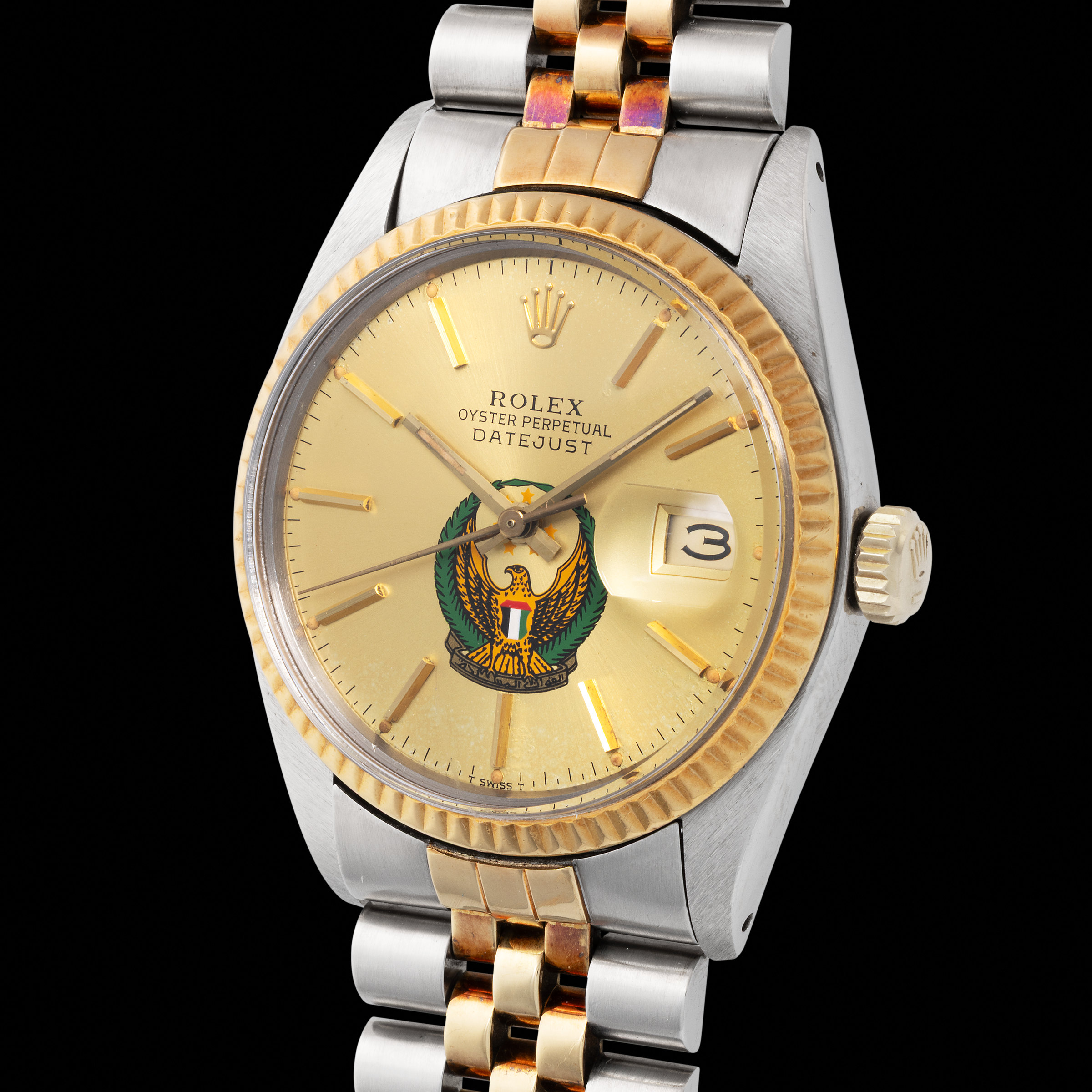 187 Rolex A distinctive and unusual, Datejust, automatic wristwatch in steel and yellow gold, with “UAE” Armed Force logo, reference 16013.