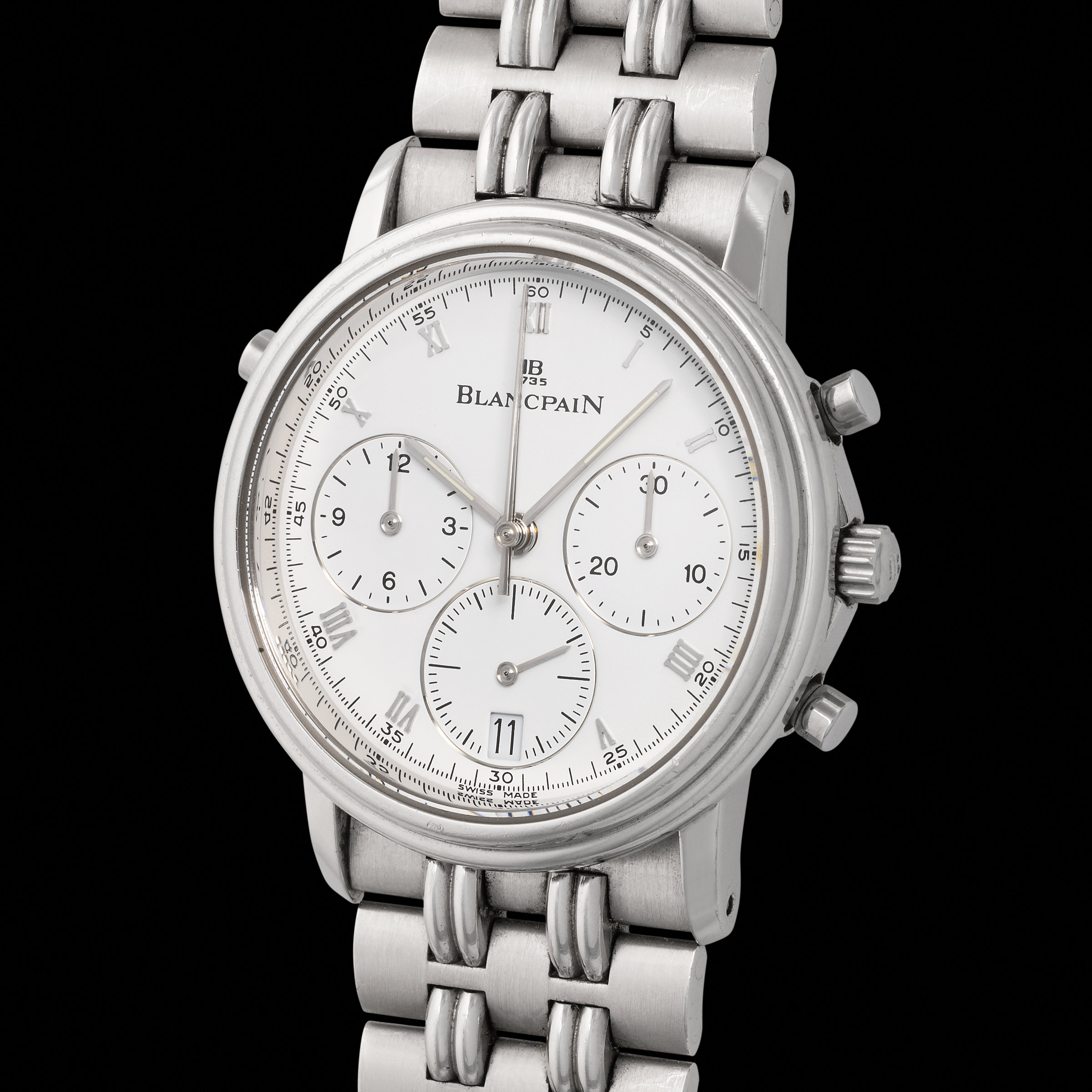 153 Blancpain A highly impressive and valuable, Villeret, split-seconds automatic wristwatch in platinum, with white dial.