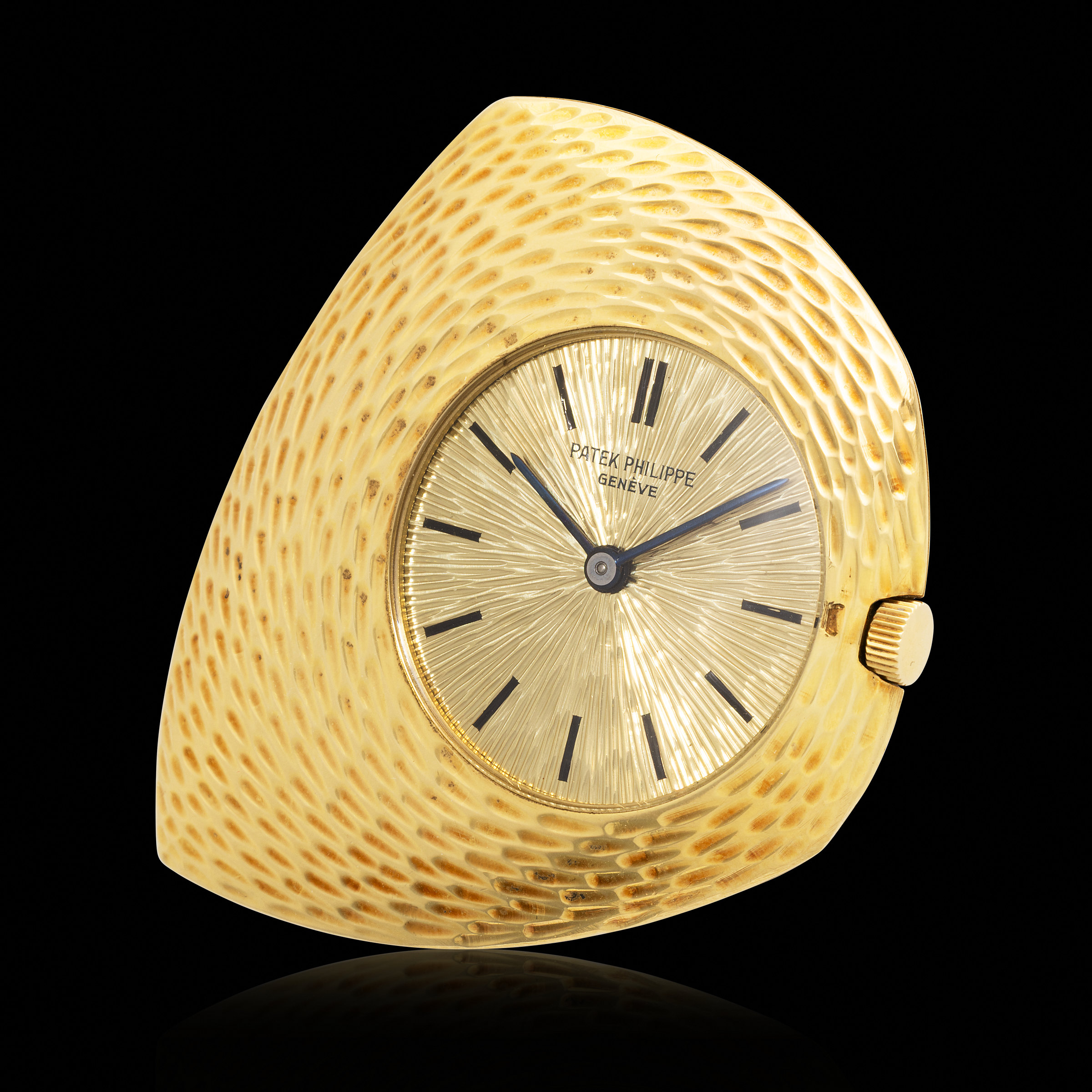 Among Patek Philippe’s many ventures into bold design, few are as daring or as evocative as the Ricochet collection — a rare and celebrated departure from the maison’s typically restrained classicism. Introduced in 1961 and produced for a brief span of about five years, the Ricochet watches were conceived under the visionary eye of Gilbert Albert, one of the most influential designers in the firm’s storied history. Serving as head of Patek Philippe’s creative department from 1955 to 1962, Albert brought a sensibility shaped as much by fine art and sculpture as by traditional horology. A graduate of Geneva’s Ecole des Arts Industriels, he would later go on to revolutionize the world of high jewellery, integrating organic forms and unexpected materials — such as coral, wood, and meteorite — into wearable objets d’art. His time at Patek Philippe remains a golden age of aesthetic experimentation, where elegance and asymmetry danced hand in hand. The Ricochet design, particularly in the form of reference 788/4, captures this spirit with masterful clarity. With fluid lines that seem to echo the undulations of water, the two-piece cases were crafted by Antoine Gerlach (Geneva key 4), and fitted with Stern Frères dials and the ultra-slim caliber 23-300, a movement perfectly in keeping with the watch’s sculptural delicacy. Only known to have been produced in yellow gold, the reference 788/4 series was issued in five stylistic evolutions, of which the present 788/4 is among the rarest. Remarkably well-preserved, the present watch stands out for its untouched case, retaining the fine stippled texture and taut geometry so easily lost to polishing. For the connoisseur of avant-garde watchmaking and mid-century artistry, this is a compelling piece of horological sculpture.