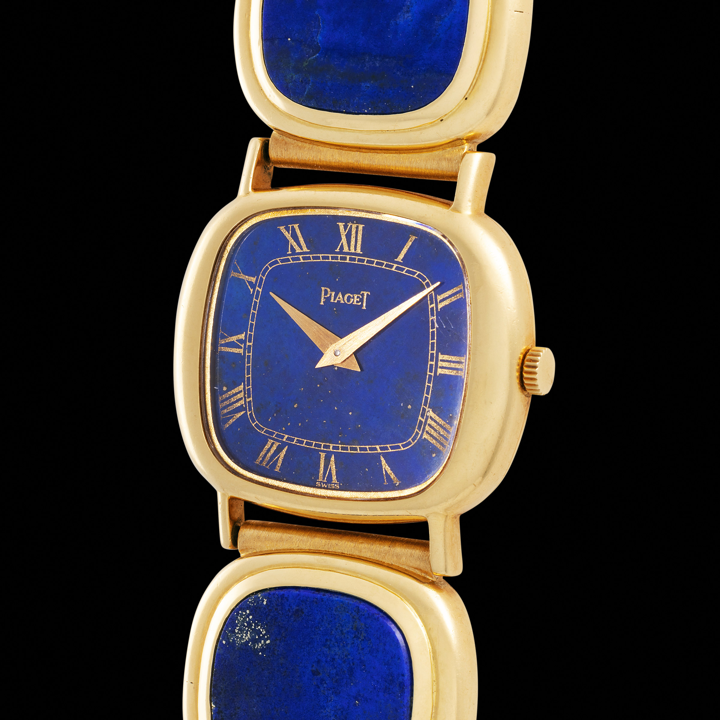199 Piaget An elegant and precious, bracelet wristwatch in yellow gold, with lapis lazuli dial and bracelet.