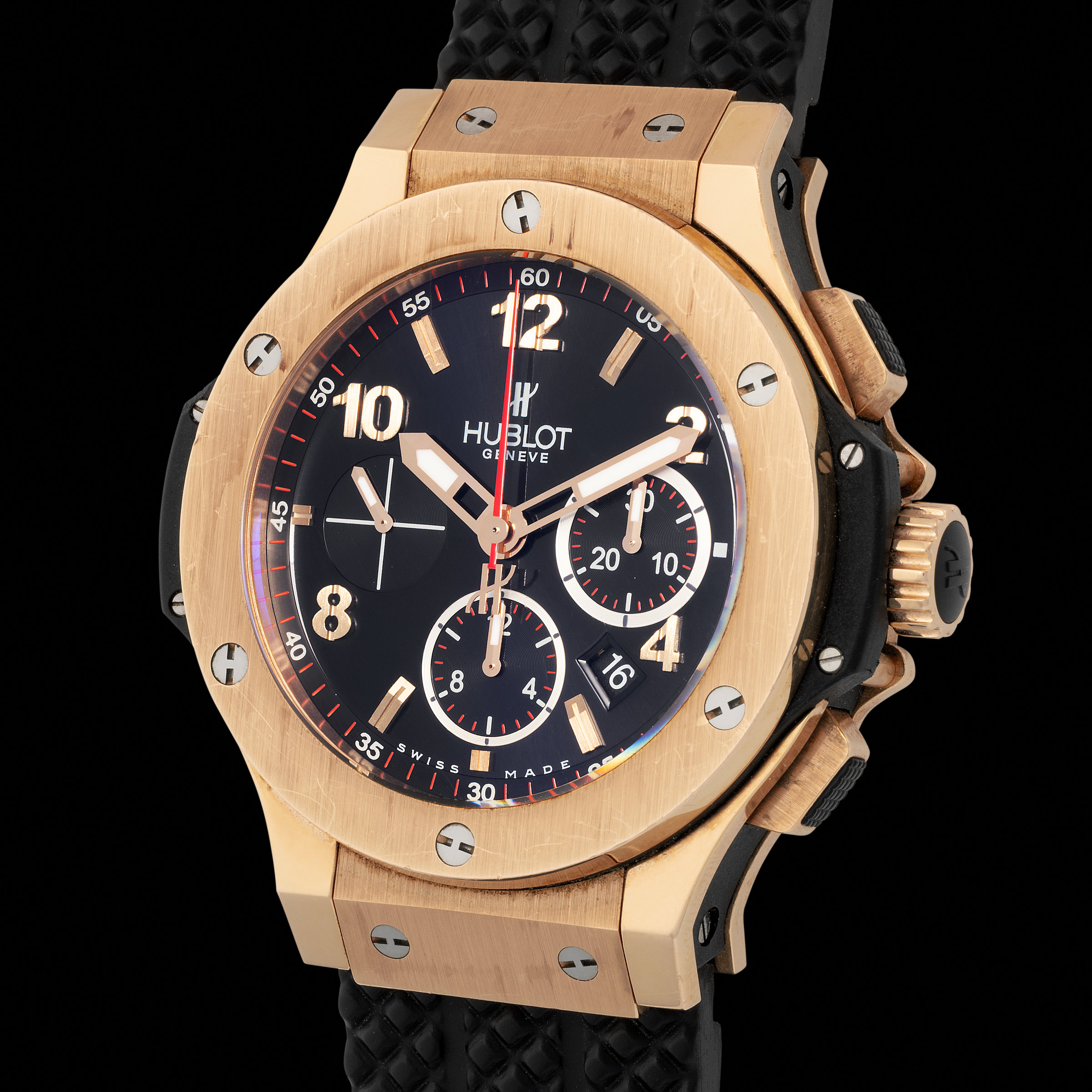 This reference 301.M is housed in a generous 44mm case, with a brushed titanium central chassis and an opulent pink gold bezel secured by Hublot’s signature H-shaped screws. The black composite resin inserts and rubber strap lend a tactile contrast, offering durability and comfort without compromising on luxury. Its jet black dial reveals layered elements that highlight the brand’s commitment to high-tech aesthetic engineering. The result is a timepiece that bridges two worlds—sport and sophistication, resilience and elegance—and stands as a defining chapter in the evolution of 21st-century horology.