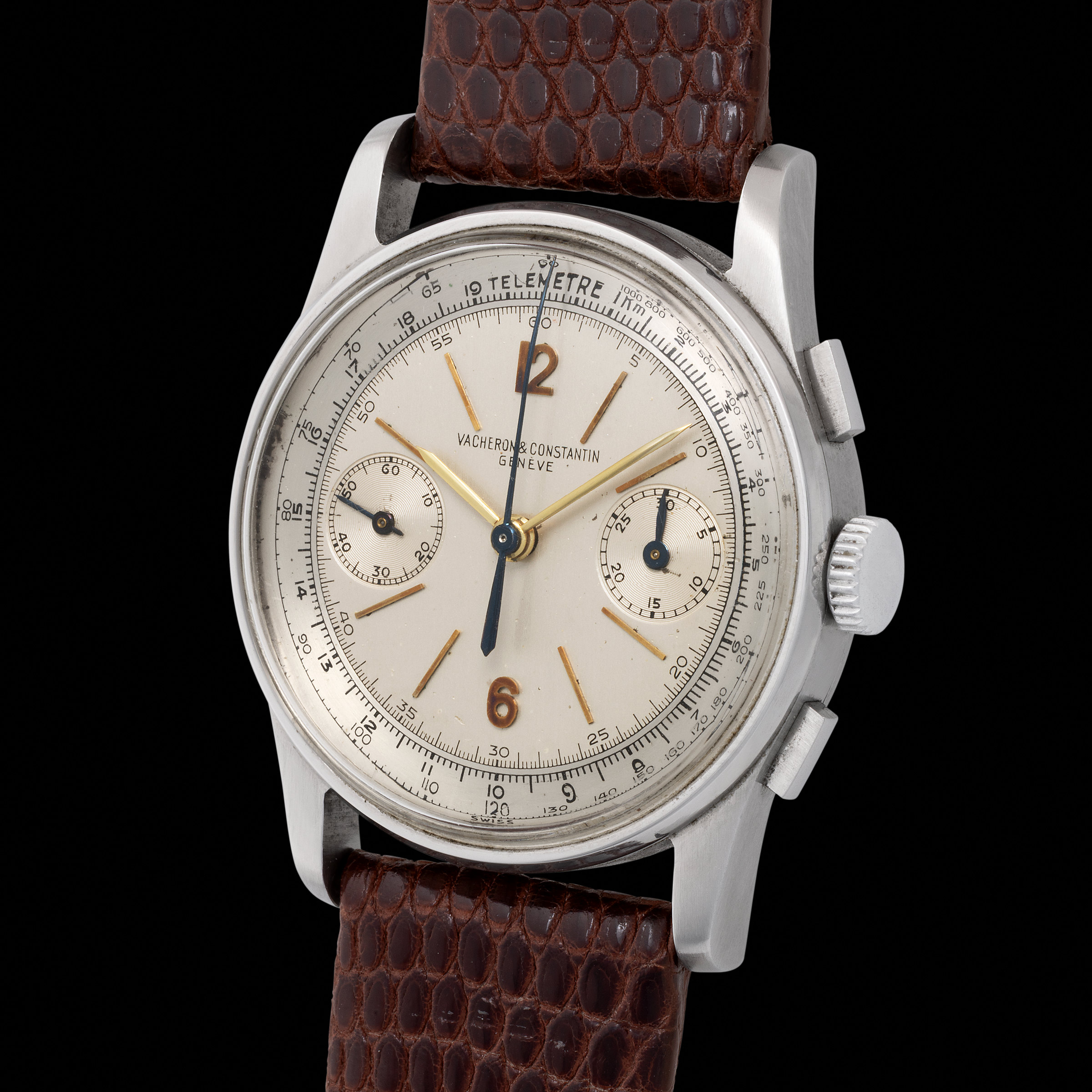 243 Vacheron Constantin An incredibly rare and attractive, chronograph wristwatch in steel, with two tone telemetric and tachymetric scales dial, reference 4072.