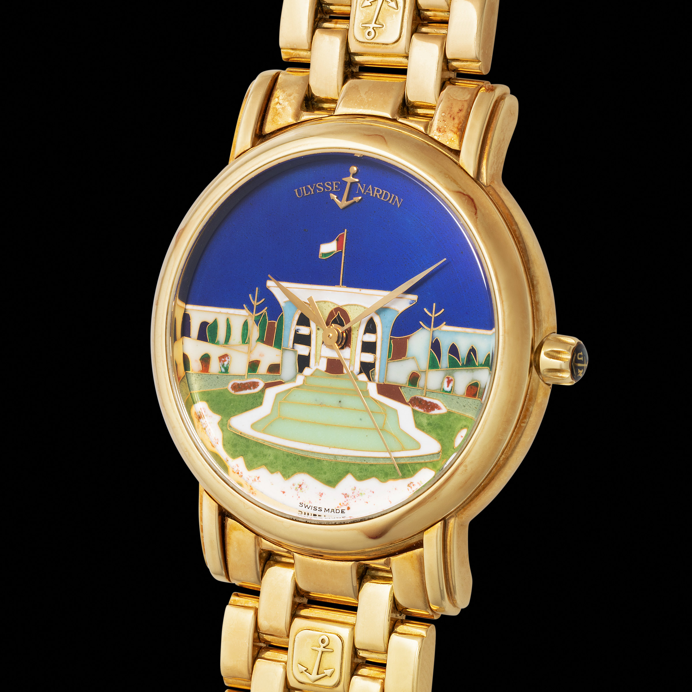3 Ulysse Nardin An exceptionally elegant, glamorous and limited edition, San Marco, automatic wristwatch in yellow gold, cloisonné enamel dial depicting the Al Alam Palace of Sultan Qaboos.