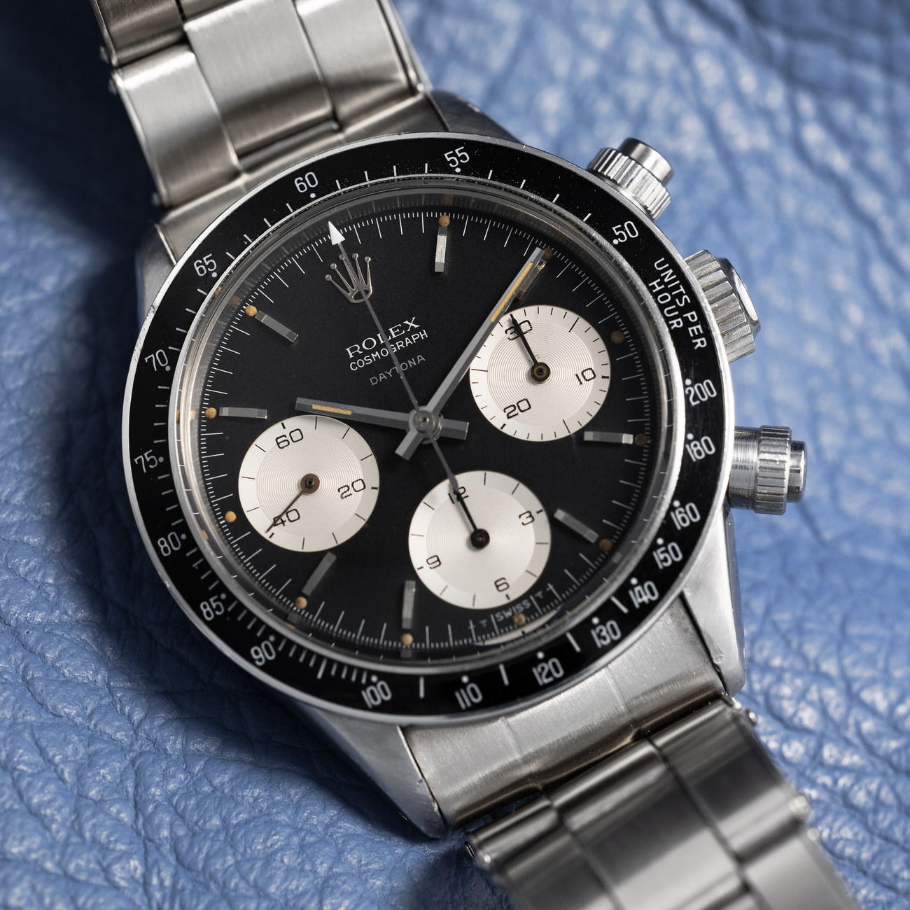Perhaps the most electrifying piece of the sale is a Rolex Daytona prototype that predates even the reference 6240. Believed to be the very first screw-pusher Daytona ever built, this watch was created to test the waterproofness of chronograph pushers at different depths underwater.